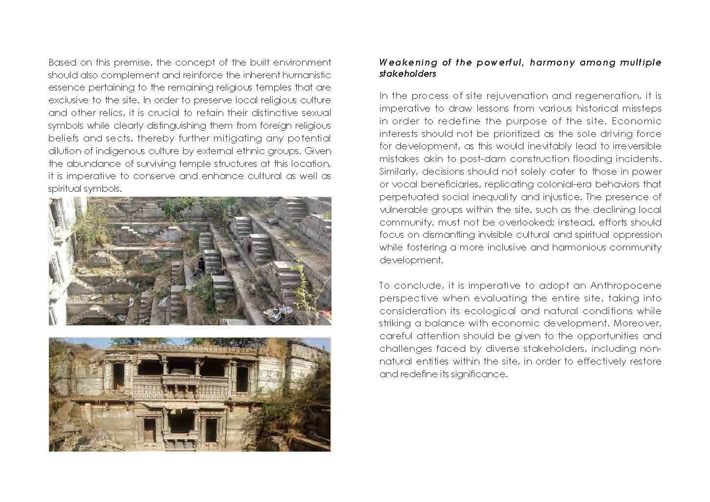 By preserving the historical significance, and respecting and enhancing the local living environment, it is possible to imbue the site with renewed meaning during its rejuvenation process, taking into consideration the residents and other stakeholders. This conceptual approach aims to explore and define individual and societal aspects regarding cultural, economic, and local characteristics. How can we achieve a more equitable living environment for all stakeholders to foster autonomy and diversity at the site amidst challenges posed by cultural erosion and environmental changes.